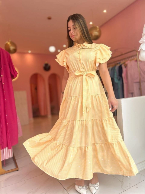 Apresentamos o Vestido Lírios, uma peça sofisticada confeccionada em alfaiataria de alta qualidade. Seu design midi destaca-se pelos botões funcionais que agregam charme e praticidade. As mangas 3D curtas e o delicado laço na cintura realçam a feminilidade com elegância. Ideal para ocasiões especiais que exigem estilo e conforto.