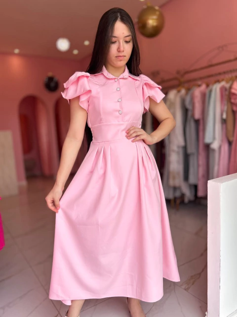 Conheça o Vestido Alfaiataria Orquídeas, uma peça midi feita em tecido de alta qualidade que une elegância e conforto. Suas mangas curtas 3D e botões funcionais conferem um charme sofisticado e exclusivo. Ideal para ocasiões que pedem um toque de refinamento.